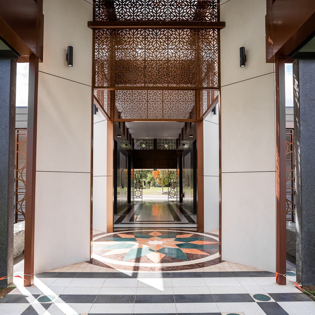Designed in a fitting cross layout with a central elevated roof section, generous walkways and expansive areas for contemplation, this stunning building is a place of reflection and inspiration for family and visitors.