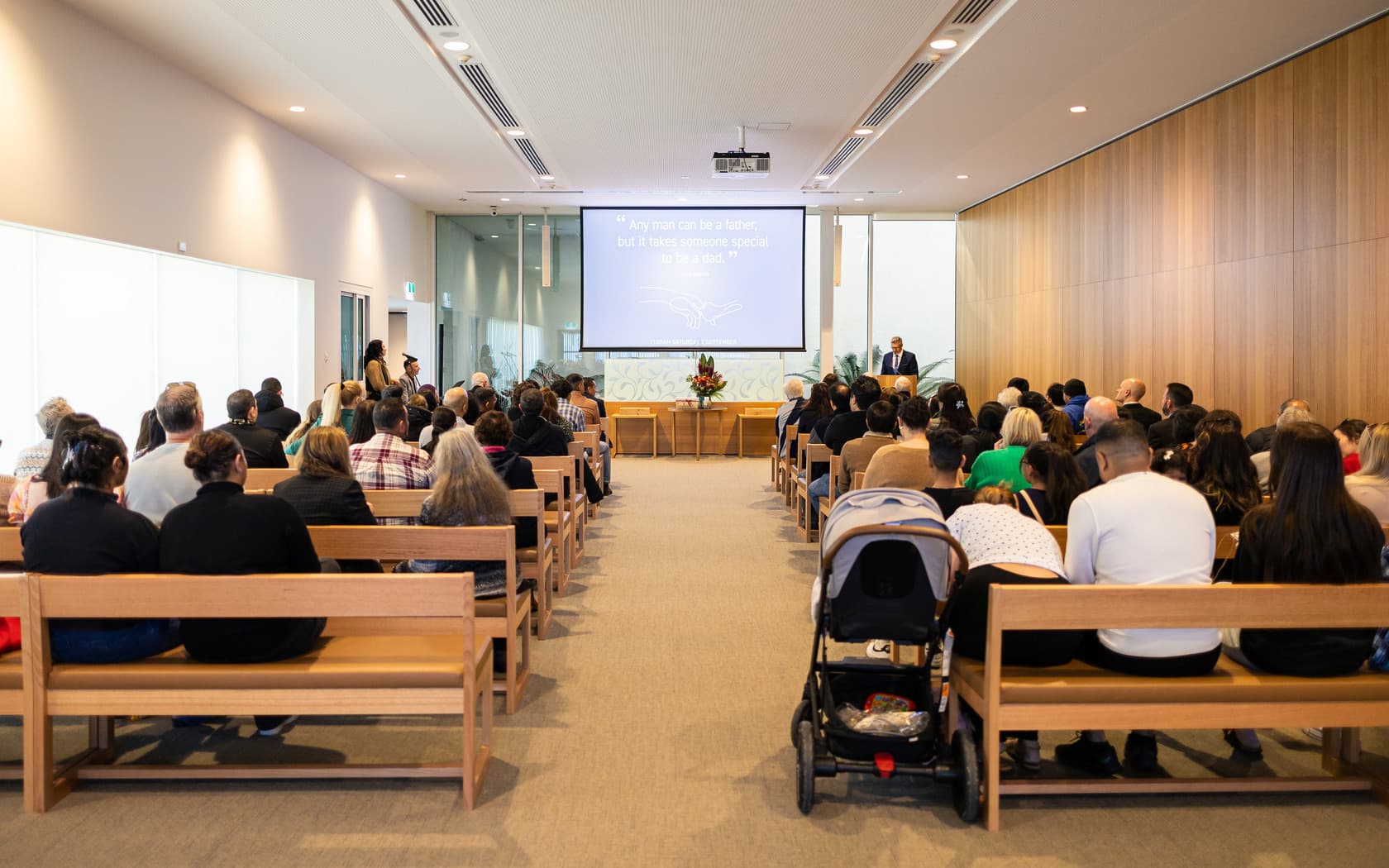 The immediate family sits in the front rows, the extended family in the following rows, followed by close friends. Acquaintances and co-workers sit or stand towards the back of the venue or wherever space is left once others have been seated.