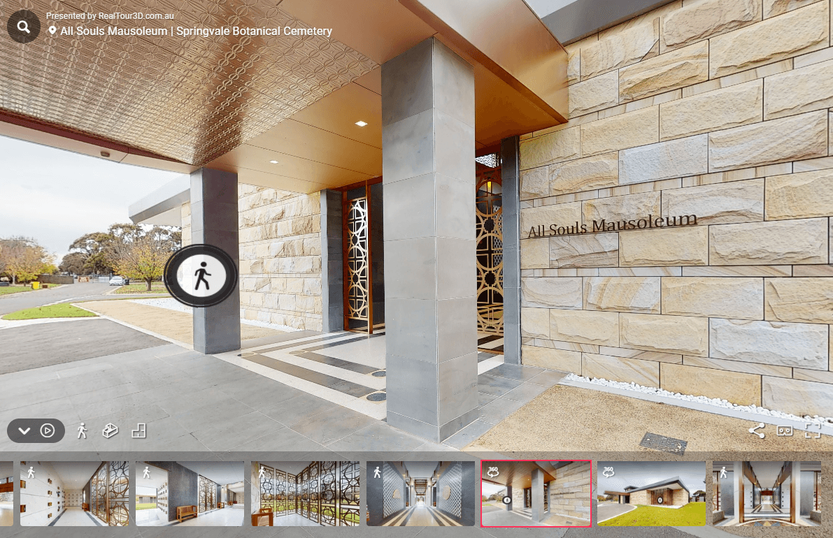 At the heart of the mausoleum is a beautifully landscaped internal garden courtyard with details and symbolism drawn from the holiest of Christian gardens, the garden of Gethsemane. This holiest of Christian gardens is honoured and reinterpreted in the All Souls garden by mature olive trees and massive Harcourt granite rock.