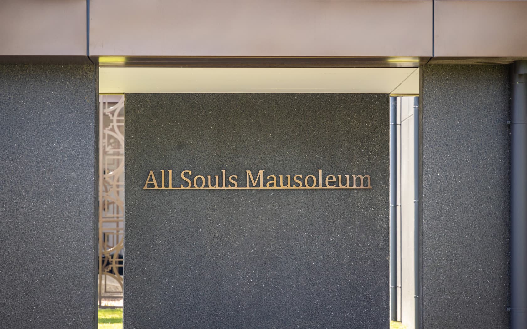 At the heart of the mausoleum is a beautifully landscaped internal garden courtyard with details and symbolism drawn from the holiest of Christian gardens, the garden of Gethsemane. This holiest of Christian gardens is honoured and reinterpreted in the All Souls garden by mature olive trees and massive Harcourt granite rock.