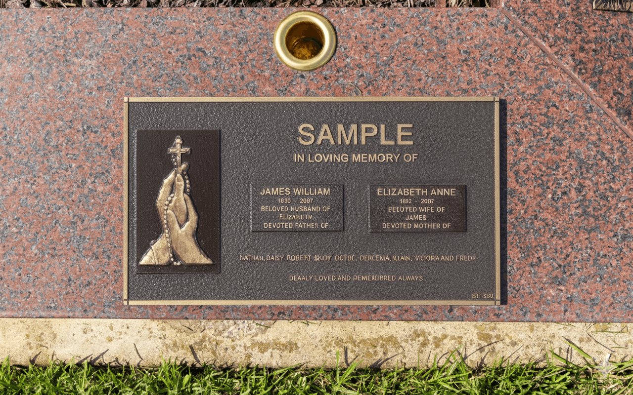 The main plaque can have different styles such as decorative designs, shadowline and classic. To customise plaques, families may choose to add a photo tile, change a border or add an emblem at an additional cost. Further details in our blog: How to create the perfect memorial plaque.