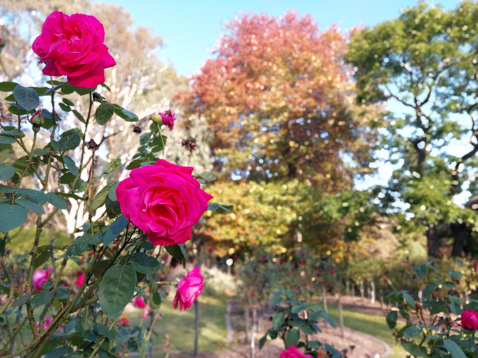 During autumn, this area bursts into rich, warm colours with garden beds of roses, shrubs, and trees.