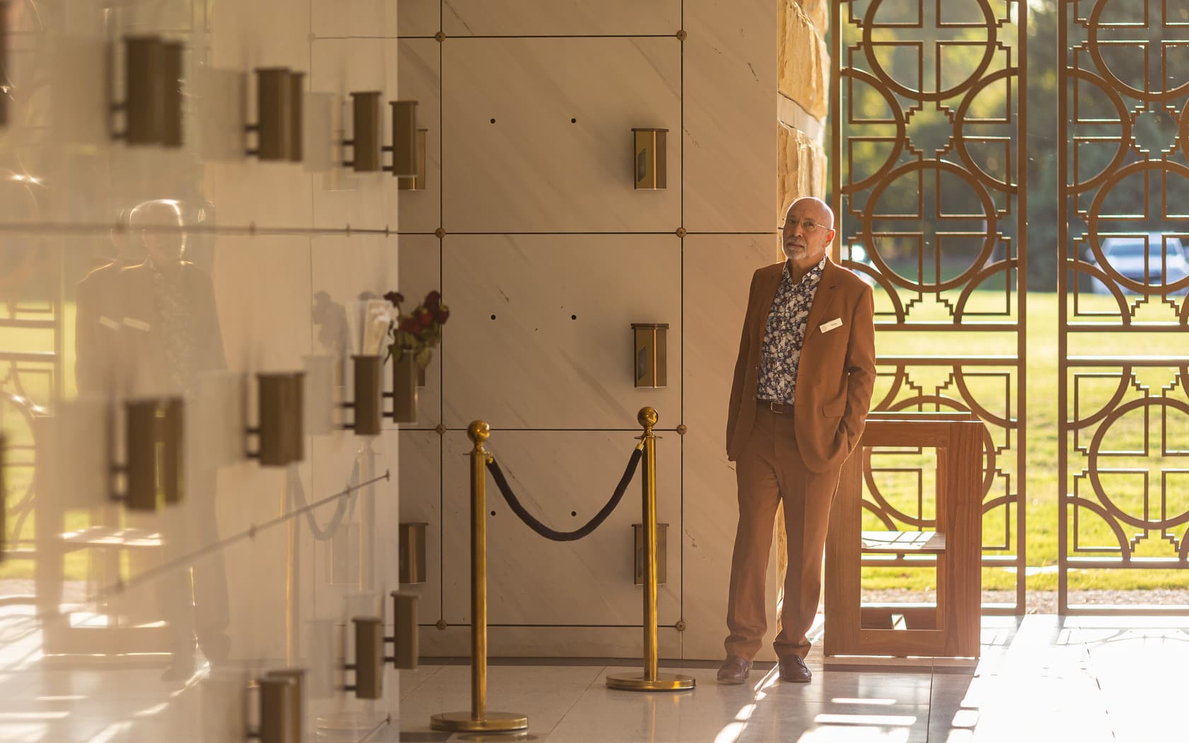 A contemporary interpretation of a timeless mausoleum, filled with natural light to create a welcoming and comforting ambience.
