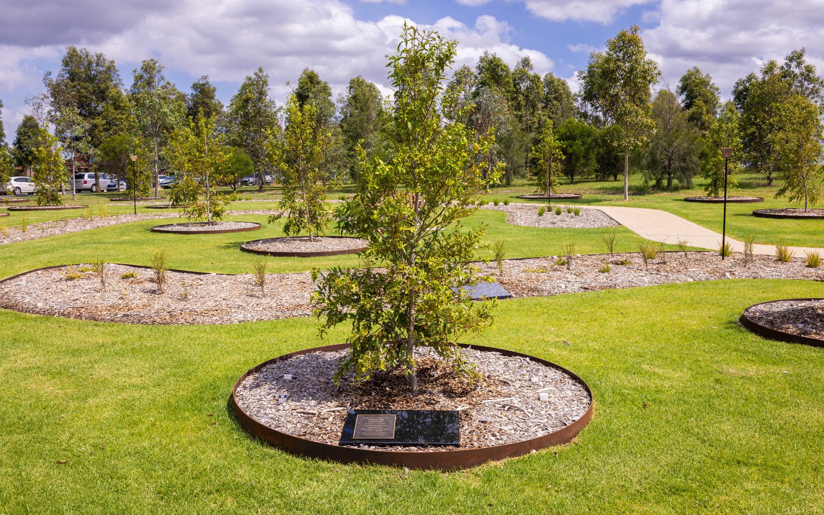 Tree memorials are available in shared dual positions or a family tree package with eight positions. They feature a bronze plaque on a granite base at the foot of a beautiful tree.